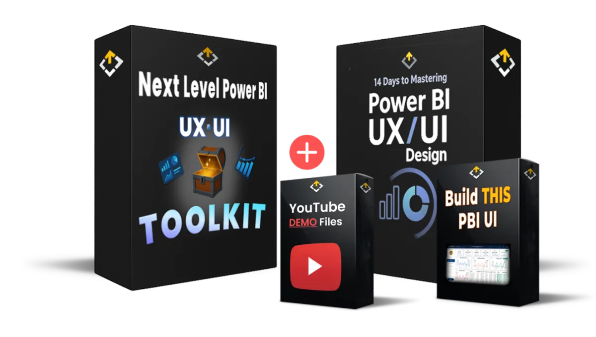 14 Days to Mastering Power BI UX/UI Design Course – 100+ lessons, 15+ hours of content, and all project files (dataset, icons, JSON, images, backgrounds, source file).