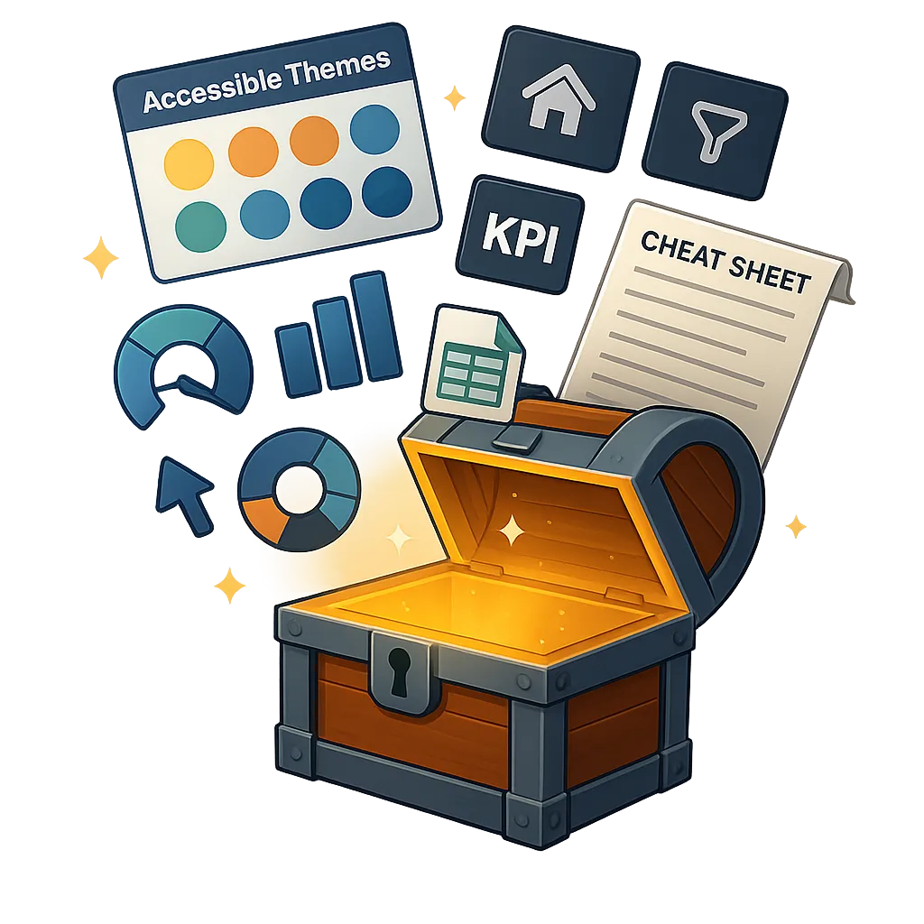 With 35 backgrounds, 25 accessible color schemes, 440 custom SVG icons, 278 curated emojis, pre-modeled datasets, and more, this toolkit gives you everything you need to deliver dashboards that are modern, polished, and stakeholder-approved.