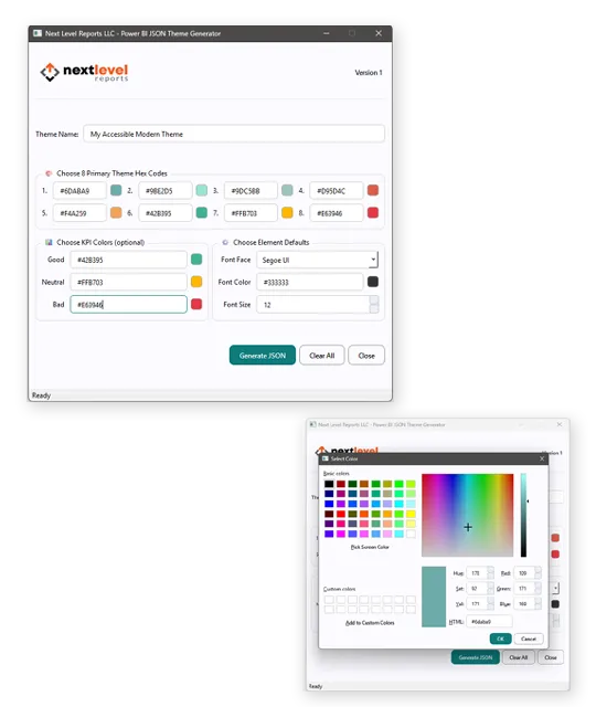 Power BI JSON Theme Generator (Windows App) – Build polished JSON themes in seconds.