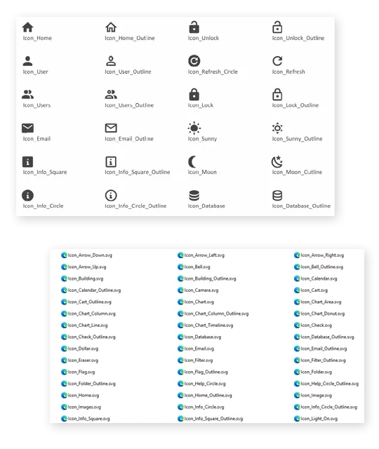 ✅ Organized & Renamed for Speed – Each file is clearly labeled (Icon_Home, Icon_User, etc.), so you can find and drop in the exact icon you need without wasting time.
