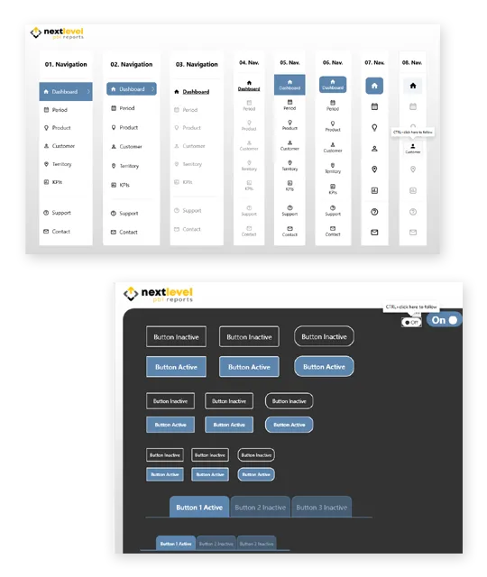 18 Navigation & Slicer Button Templates – Light + dark mode menus and slicers ready to go.