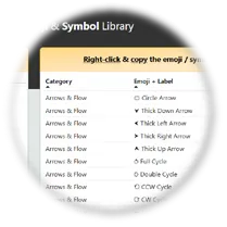 ✅ 278 Curated Emojis & Symbols – Business-relevant and carefully chosen across 20 categories: Arrows & Flow, Charts & Graphs, Data & Analytics, Finance & KPIs, Storytelling & Insight, and more.